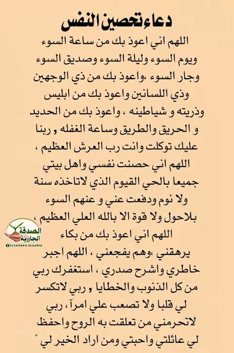 دعاء تحصين النفس بيت عطاء الخير الاسلامي