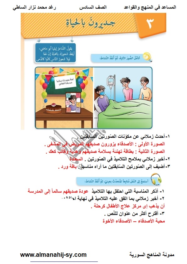 شرح قصيدة جديرون بالحياة في اللغة العربية للصف السادس الفصل الثاني