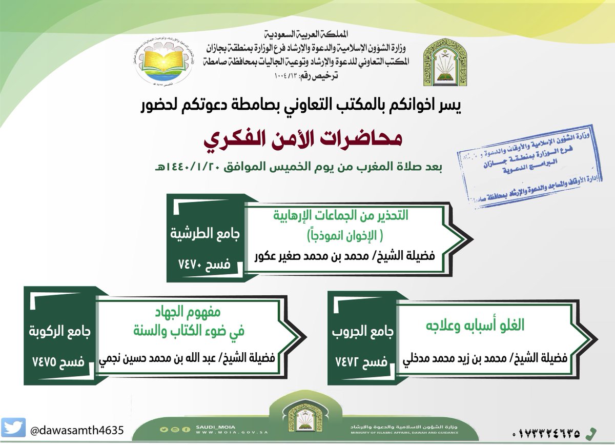 تعاوني صامطة ينظم ثلاث محاضرات عن الأمن الفكري يوم غد الخميس صحيفة وطن 24 الأخبارية