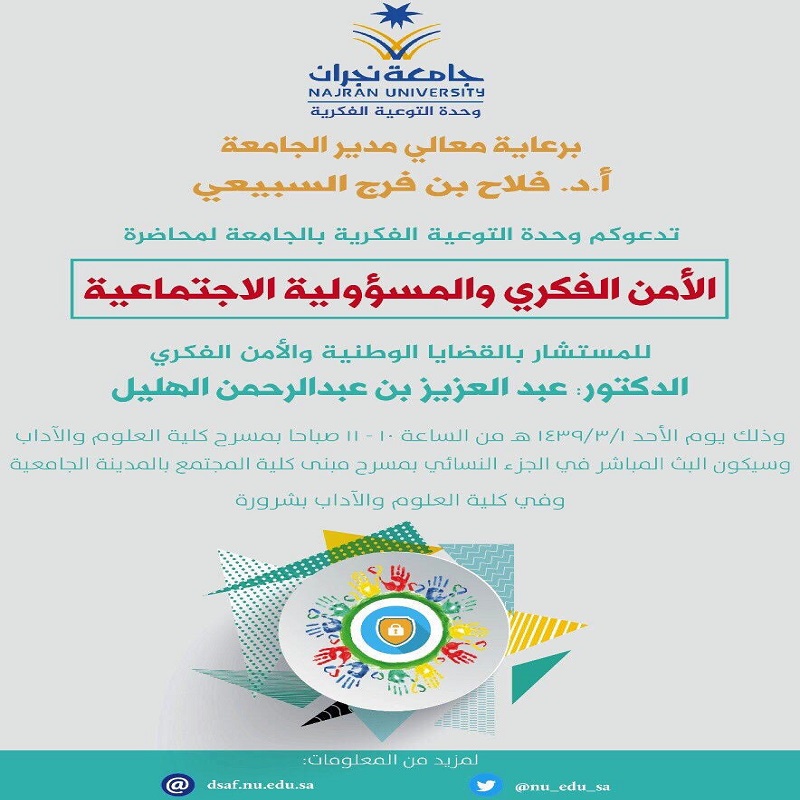 الأمن الفكري محاضرة بجامعة نجران غدا