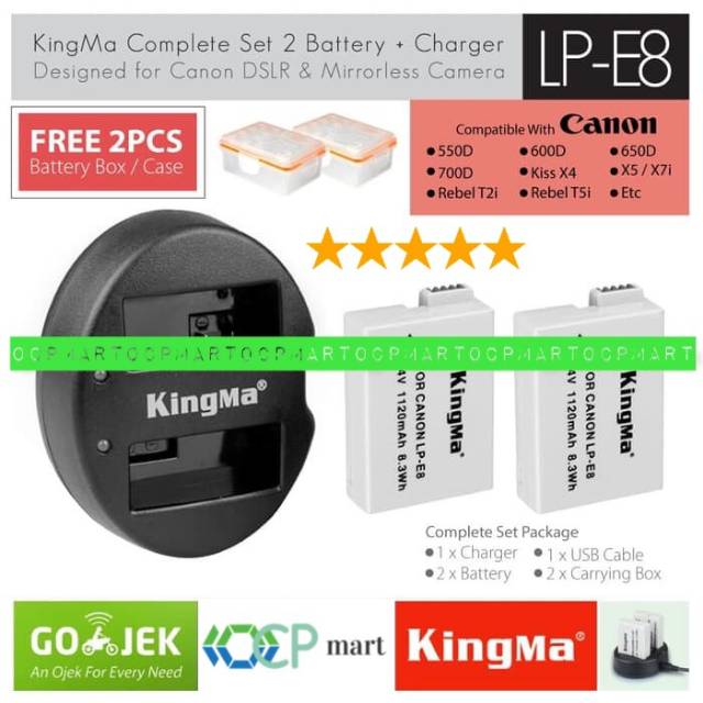 Baterai Kingma Canon Lp E8 2x Dual Charger Lc E8 550d 600d 650d 700d Wasabi Shopee Indonesia